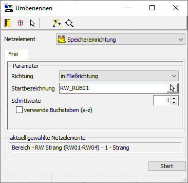 Für das unter Netzelement eingestellte Bauwerk werden für den gewählten Netzbereich alle Bauwerke der gewählten Art umbenannt.