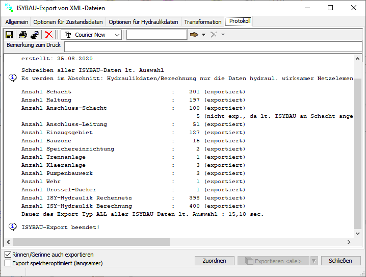 Im Textfeld werden die laufenden Aktionen des ISYBAU-Exports, sowie Fehler während des Datenexports protokolliert.
