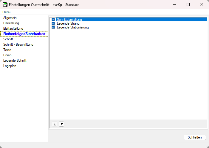 Hier kann angegeben werden, welche und in welcher Reihenfolge Schnitt-Elemente dargestellt werden sollen.