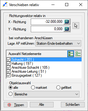 Diese Funktion ermöglicht das Verschieben einzelner Netzelemente oder kompletter Netze durch Festlegung eines Verschiebevektors.