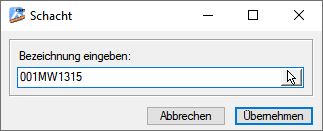 Im Dialog Schacht ist die Bezeichnung für den neuen Schacht einzugeben.
