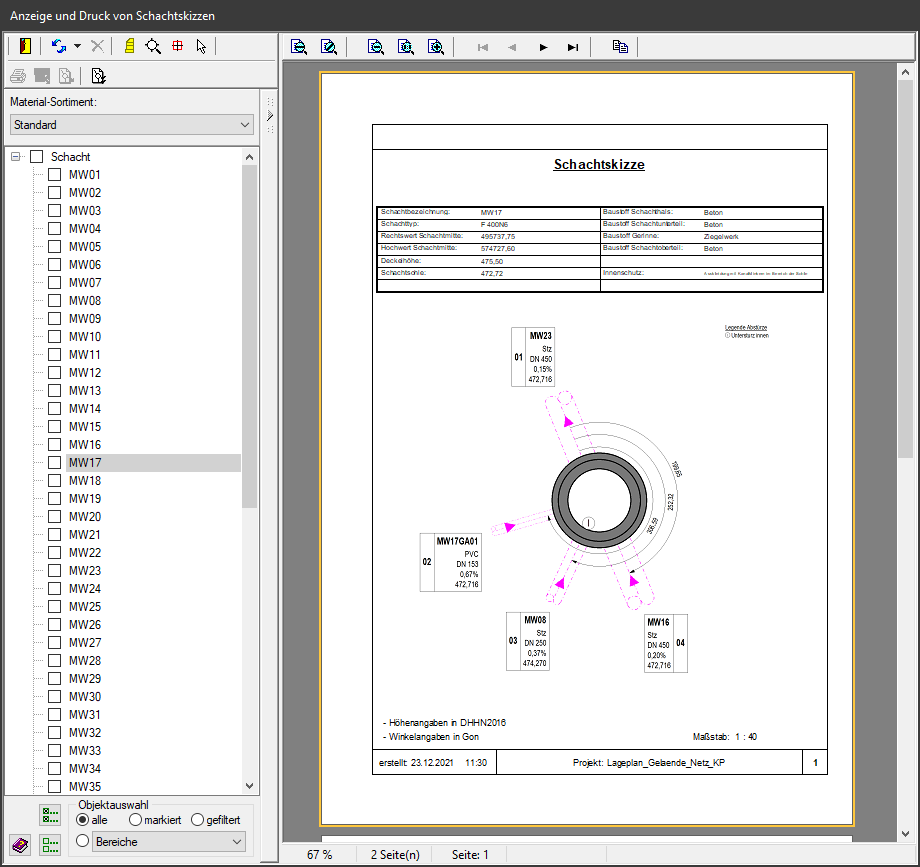 man Schachtskizzen und dazugehörige Schachtschnitte in einem separaten Projekt