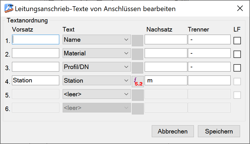 Leitungsanschrieb-Text eine Mehrfachauswahl möglich. Für den Fall einer