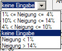Kann hier nachträglich geändert werden. Die Auswahl kann numerisch oder aus den Texten der Werteliste Neigungsklasse erfolgen.