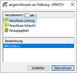 Über das Eingabefeld Netzelement wird das gewünschte Netzelement dessen Objekte auf die aktuelle Haltung verweisen, eingestellt und in dem Listenfeld Bezeichnung dann das Objekt dessen Daten angezeigt werden sollen, ausgewählt.