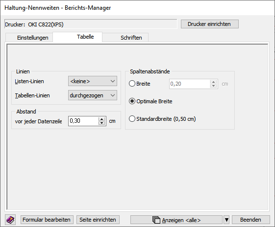 Spaltenabstände
