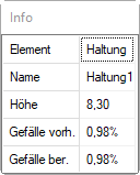 Wenn im Strang an irgendeiner Haltung eine der beiden Sohlhöhen fehlt, wird die Funktion abgebrochen. In diesem Fall sollte vorher über die Funktion Sohlhöhe-Setzen die entsprechende Höhe gesetzt werden.