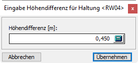Geben Sie den Betrag für die Änderung der Sohlhöhe im folgenden Dialog ein.