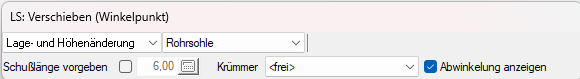Mit dem antippen erscheint der Dialog Verschieben (Winkelpunkt). Wie beim Erzeugen eines Winkelpunktes können hier die Punkttypen, Schußlänge, Abwinkelung und Krümmer vorgegeben. Außerdem ist es hier möglich,