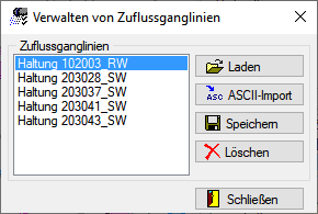 Hier können Zuflussganglinien geladen, gespeichert und gelöscht werden.