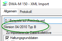 Über die Funktion ‚Importieren, DWA-M 150‘ wird der Import gestartet. Die zu importierende Datei ist auszuwählen. Die Software erkennt automatisch die zu importierende Dateiversion und den richtigen Datentyp.