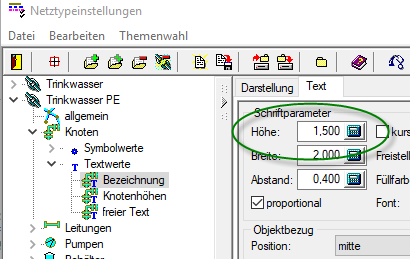 Die Festlegung der Textgrößen erfolgt über die Netztypeinstellungen immer im Maßstab 1:1, d.h. dem Maßstabsfaktor 1.0.