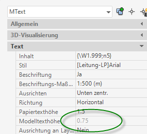 so erhält der Text die Größe 0,75 (vorausgesetzt ihm ist die Beschriftungsskalierung 1:500 zugeordnet.