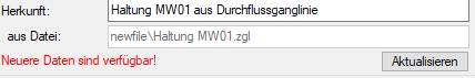 Existiert eine aktuellere Version der Eingabedatei wird dies hier gemeldet. Über Aktualisieren kann diese neu eingelesen werden.