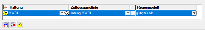 Anschließend ist in der Spalte Haltung aus der Haltungsliste des aktuellen Abwassernetzes die Haltung auszuwählen der eine Zuflussganglinie zugeordnet wird.