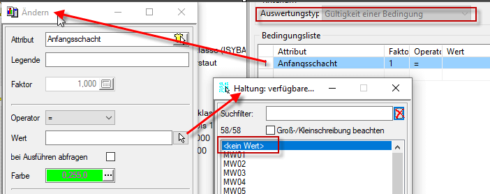 - Auswertung, Abfrage: Attribute die auf andere Datenelemente referenzieren, lassen sich jetzt auch unter Verwendung von <kein Wert> abfragen (Wert=leer ist auch zulässig).