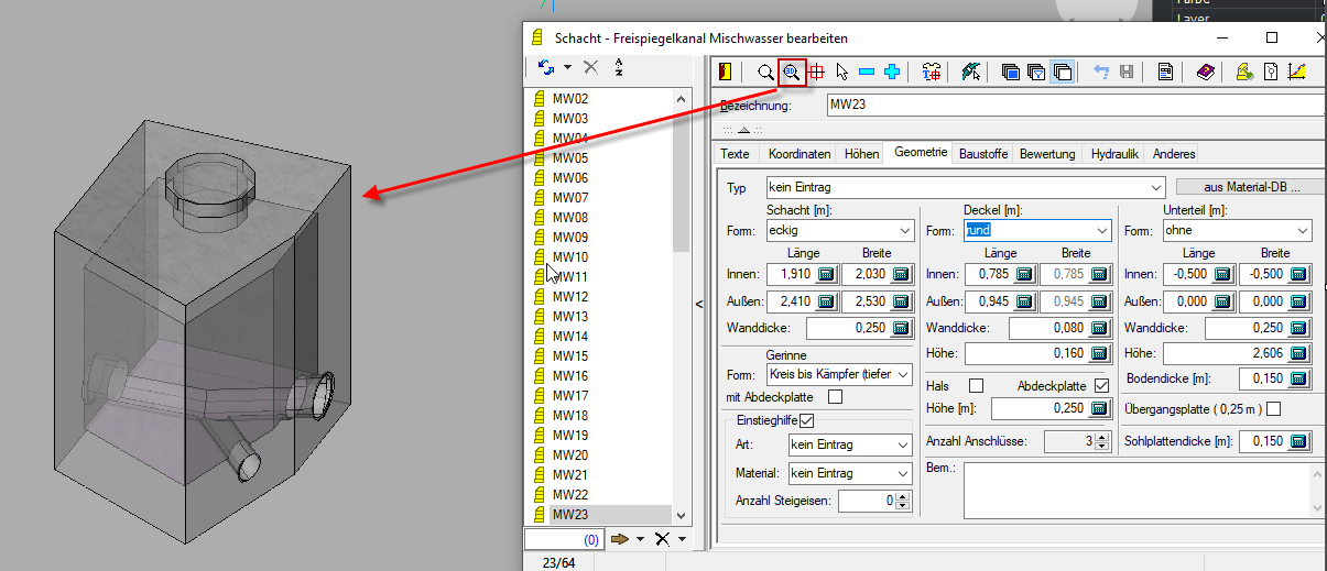 - Einstellungen, Netztyp: Transparenz für Volumenkörper der Schächte (nach dem badenwürtembergischen System) standardmäßig auf 20 gesetzt.