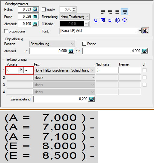 - Kanal: Einstellungen, Netztyp: Bei der Verwendung von Höhenblöcke wird nun der Vorsatz, durch den Platzhalter für den Anschrieb "A" oder "E", in zwei Teile aufgeteilt. Screenshot