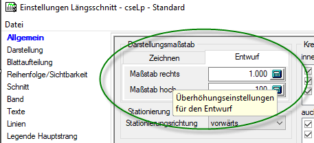 - Kanalplanung: Einstellungen, Längsschnitt: Es sind jetzt Überhöhungseinstellungen für den Entwurf möglich. Screenshot