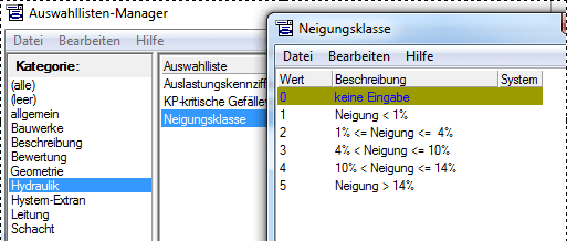 - Kanal: Verwalten, Auswahllisten: Liste Neigungsklasse hinzugefügt. Screenshot