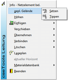 - Leitung: LS-Entwurf, gepl. Geländehöhe bestimmen: Es ist nun möglich durch Tippen im Schnitt die gepl. Geländehöhe zu bestimmen. Screenshot