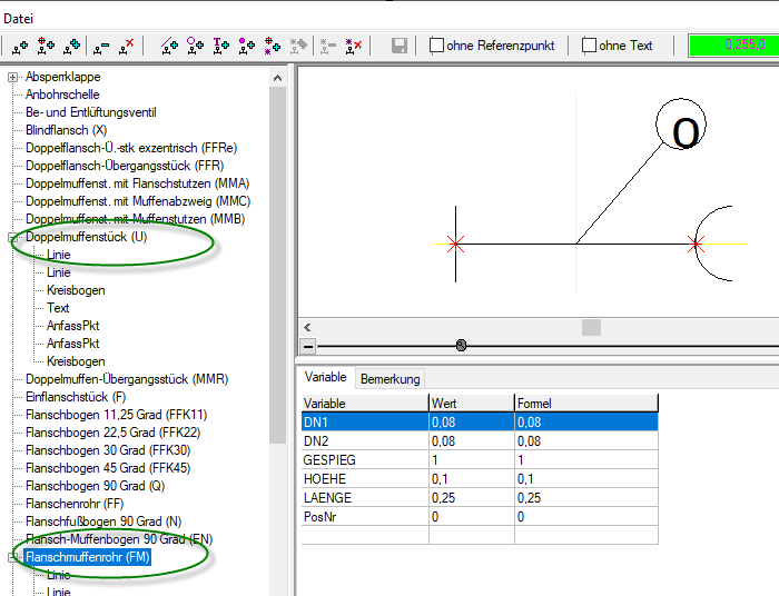 - Leitungsplanung: Verwalten, Bauteileditor: Neue Sinnbilder für Doppelmuffenstück (U) und Flanschmuffenrohr (E) ergänzt. Screenshot
