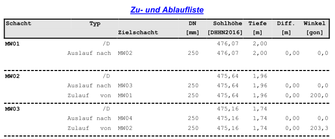 - Kanal: Auswerten, Berichte mit Fastreport, Netzelement Schacht: Herstellerlisten wurden um die Angabe Winkel (bezogen auf den Auslauf) erweitert. Screenshot