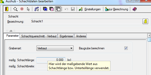 - Kanalplanung: Aushubberechnung: Es werden jetzt bei Verwendung der maßgebenden Schachtgeometrie auch die Abmessungen des Unterteils berücksichtigt. Screenshot