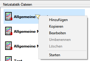 - Kanal: Auswerten, Netzstatistik: Man kann nun über das Popup-Menü den Namen einer vorhandenen Netzstatistik ändern oder eine vorhandene Netzstatistik kopieren. Screenshot