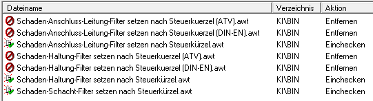 - Kanalkataster: Abfrage, Auswerten: Für Schadensklassen jetzt einheitliche Abfragen "Filter setzen nach Steuerkürzel" für alle Kodierungen. Alte Abfragen für ATV und DIN-EN entfernt. Screenshot