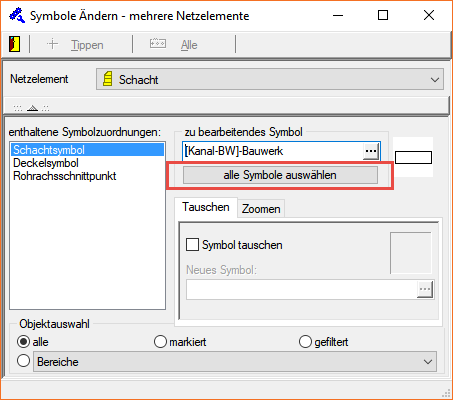 - Kanal + Leitung: Bearbeiten, Symbole ändern: Das zu bearbeitende Symbol kann nun auch wieder auf zurückgesetzt werden. Screenshot