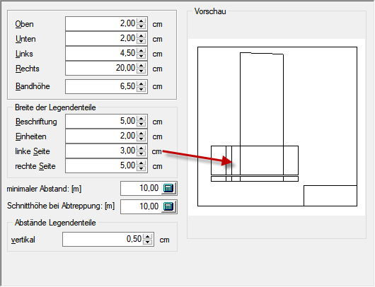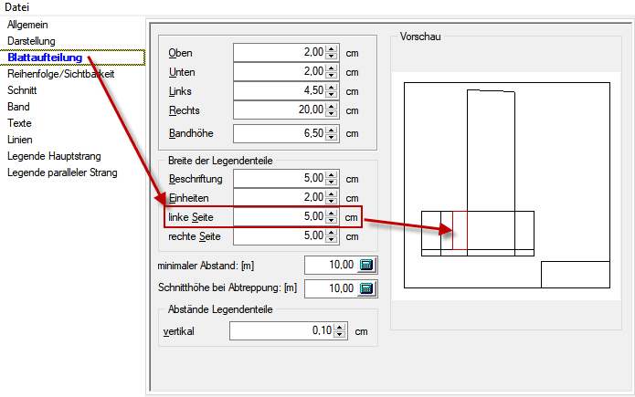 - Darstellen, Längsschnitt: Das Legendenteil auf der linken Seite wird nun durch einen Strich von den Einheiten abgetrennt. Screenshot