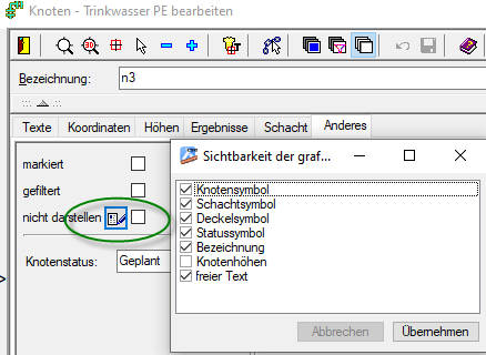- Datenbank, Netzelement, Register Anderes: Hier kann jetzt die Sichtbarkeit der grafischen Bestandteile eines Netzelementes angezeigt und auch geändert werden. Screenshot