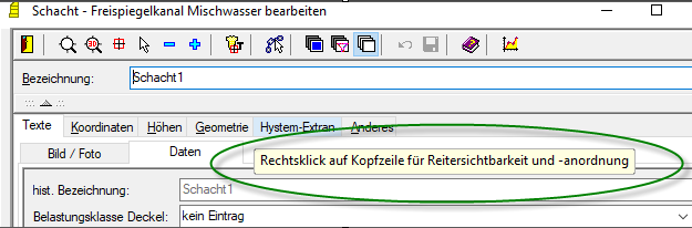 - Darstellen Schachtskizze: Es erfolgen jetzt bessere Hinweise, wenn Schachtschnitt und/oder Schachtgeometrie (Seite 2) aufgrund fehlender Geometriedaten nicht dargestellt werden.
