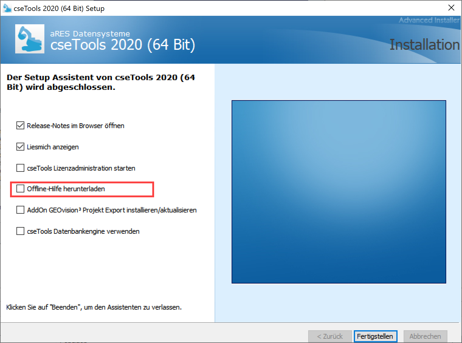 - Installation: Im letzten Schritt der Installation lässt sich jetzt die Offline-Hilfe herunterladen. Screenshot