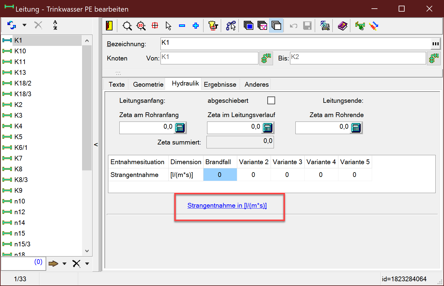 - Datenbank, Leitungen: Bei der Strangentnahme kann nun auch zwischen dargestellten Einheiten gewechselt werden. Screenshot
