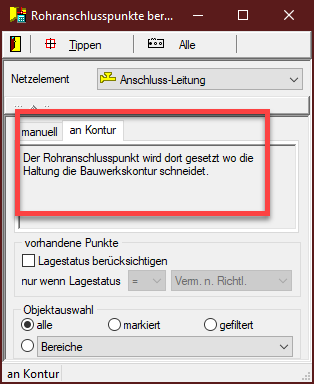 - Berechnen, Rohranschlusspunkt: Bauwerkskonturen können nun für die Berechnung der Rohranschlusspunkte benutzt werden. Screenshot