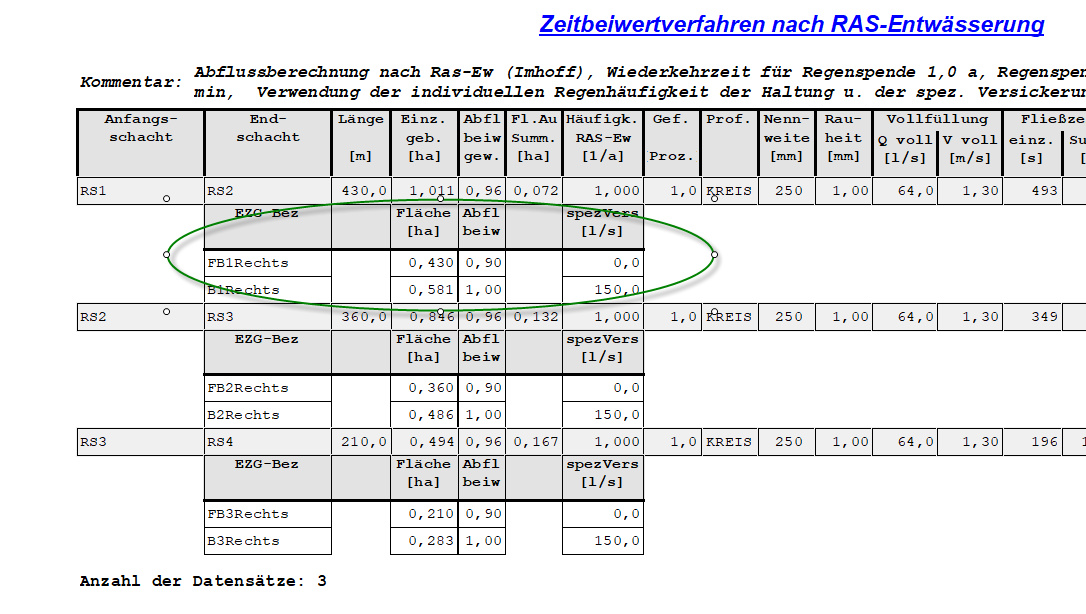 - Hydraulik, Zeitbeiwertberechnung: Neue Ausgabeliste für den Flächennachweis bei Berechnung nach RAS-Ew. Screenshot