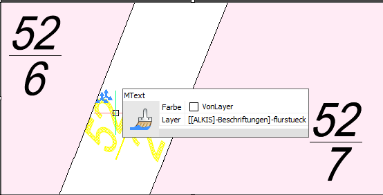 - Flurstücksnummern mit Zähler/Nenner werden jetzt als ein MText (gestapelt) erzeugt. Screenshot