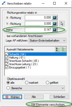 - Berechnen, Höhen aus DGM: Beim Berechnen der Deckelhöhe wird dessen Lage nicht berücksichtigt. Der Deckel bekommt immer die Höhe an der Schachtmitte, nicht Deckelmitte. -> korrigiert