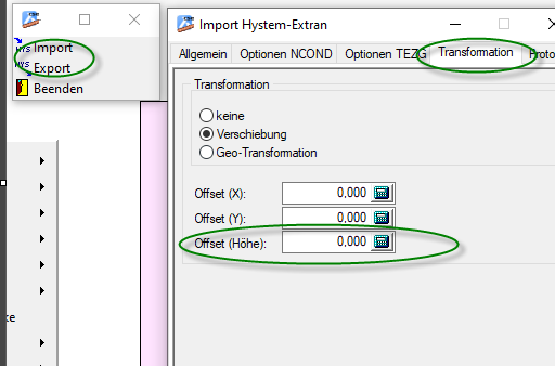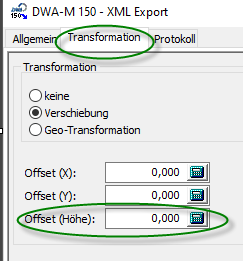 - Importieren/Exportieren DWA M-150: Die Transformation (Verschiebung) der Koordinaten ist jetzt auch mit Höhe möglich. Screenshot