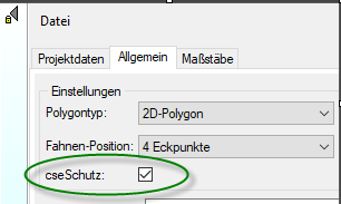 - Projekteigenschaften, Register Allgemein: Der cseSchutz kann jetzt auch unter BricsCAD an dieser Stelle gesetzt werden. Screenshot