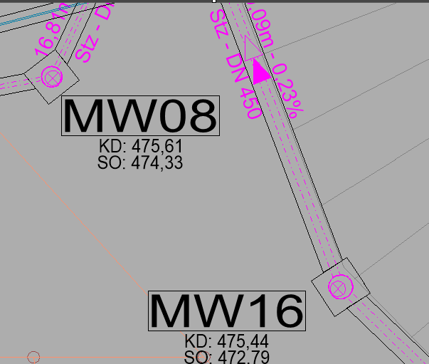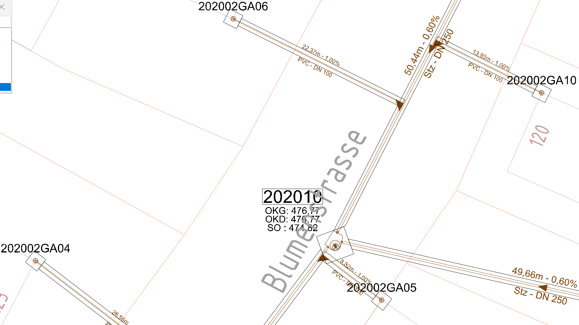 - Längsschnitt-Entwurf: Seitenzuläufe werden u. U. nicht dargestellt. Im Kanal ist nur die Höhe und die Textfahne zu sehen. -> korrigiert
