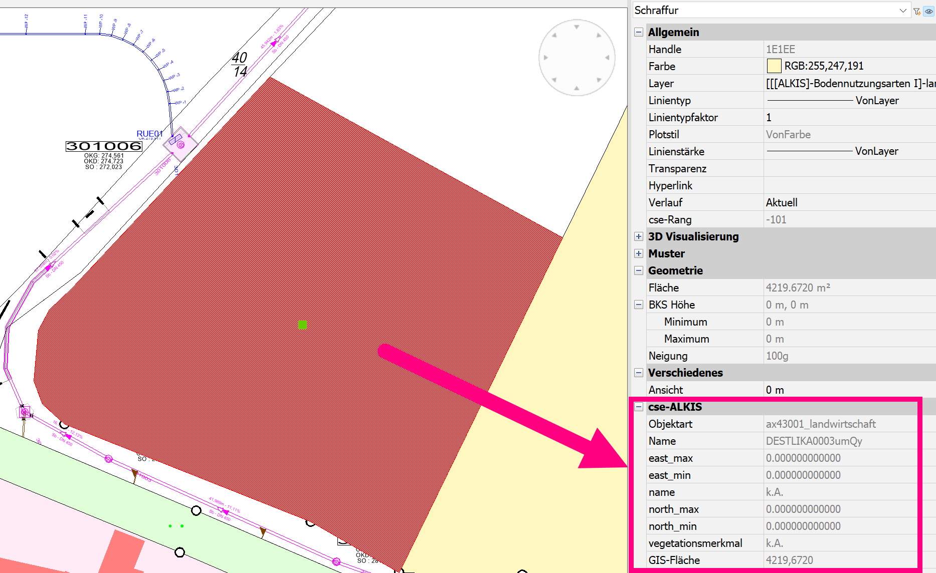 - cseOPMext: Die Attributanzeige im Objekteigenschaftenpanel ist jetzt auch für ALKIS-Objekte verfügbar. Screenshot