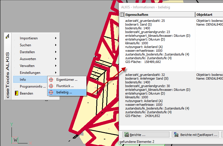 - ALKIS-Inhalte "Bodenschätzung" hinzugefügt (Darstellung, Beschriftung, Auswertung). Screenshot
