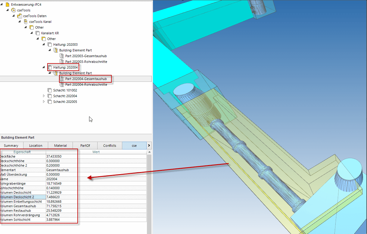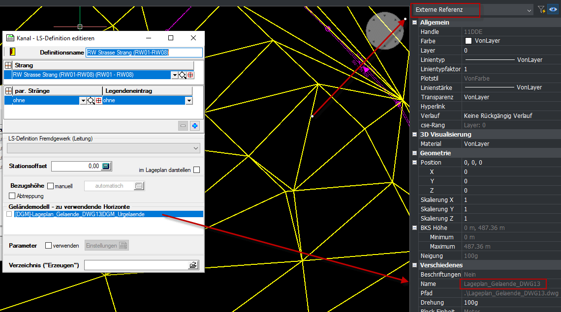 - Aushub: Die Berechnung des Rohrgrabens von Anschlussleitungen erfolgt jetzt an die Achse des Bezugelementes. Screenshot