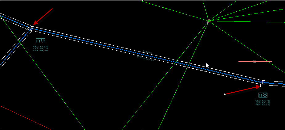 - Längsschnitt-Entwurf: Verbinden, Gefälle über nur eine Haltung wird u. U. nicht ausgeführt. -> korrigiert