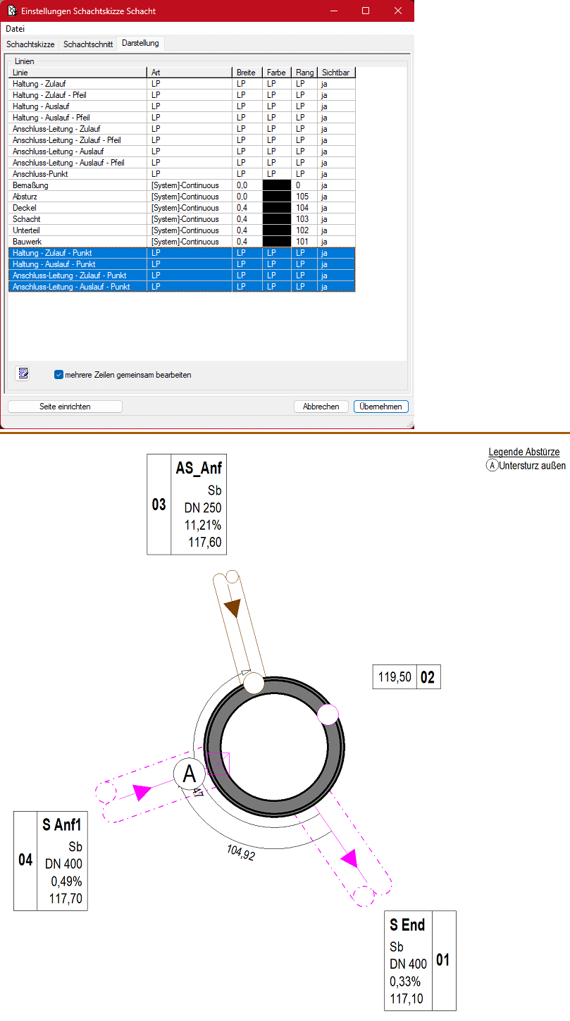 - Schachtskizze: Man kann nun die Rohr- und Anschlusspunkte in der Schachtskizze darstellen. Screenshot