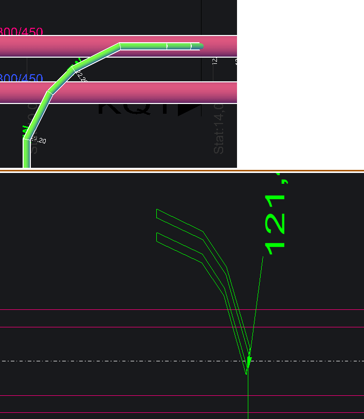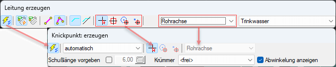 - Bearbeiten, Erzeugen, Knickpunte: Der Anschlusswinkel der vorausgehenden Leitung wird jetzt am Knoten berücksichtigt. Screenshot