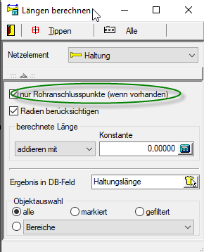 - Berechnen, Länge: Schalter umbenannt zur Klarstellung der Berechnungsoption. Screenshot